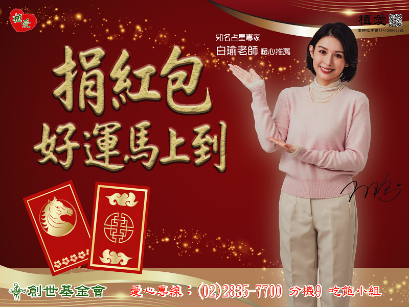 農曆馬年就要到了, 新年收到紅包,象徵保佑平安與傳遞幸福, 那收到的紅包要如何使用呢? 除了儲蓄、買東西犒賞自己,也可以選擇捐出紅包響應公益。