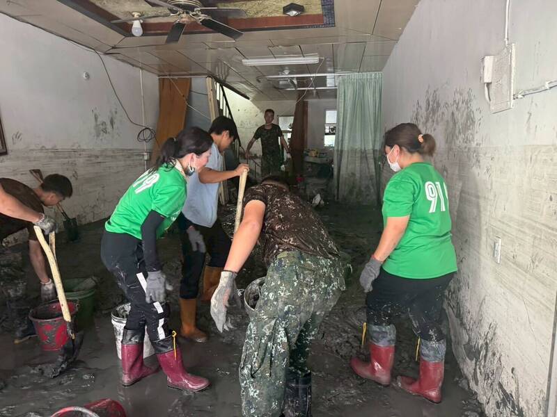 由於服務個案的家園遭到沖毀,創世基金會組成救災團隊,協助案家清理淤泥。(創世基金會提供)
