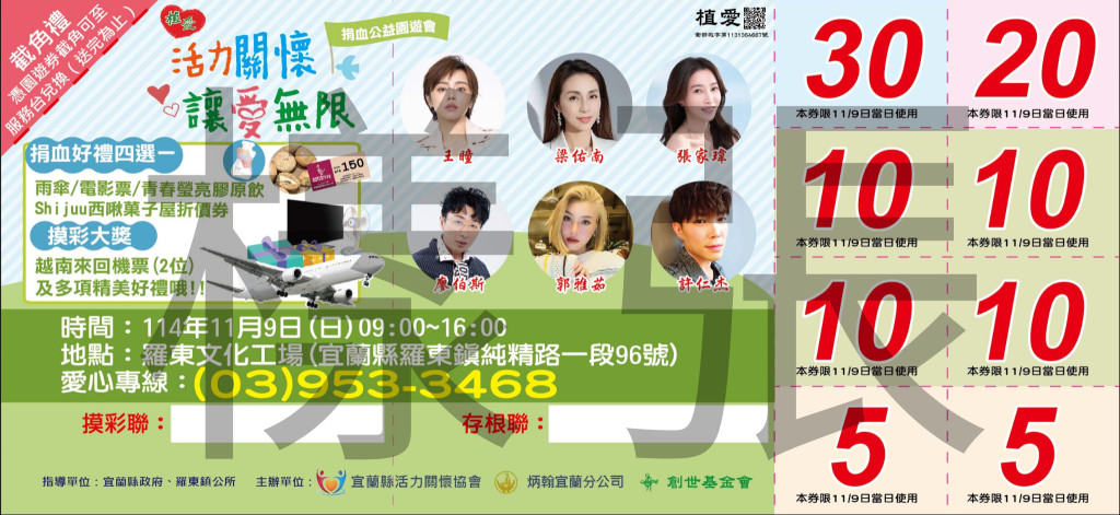 > [羅東]:【活力關懷 讓愛無限捐血公益園遊會-園遊券(自用)】