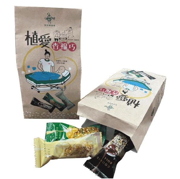 內容物:白巧克力杏仁捲、黑巧克力杏仁捲、青蔥雞肉鬆杏仁捲,三種口味隨機搭配,每包共8入。