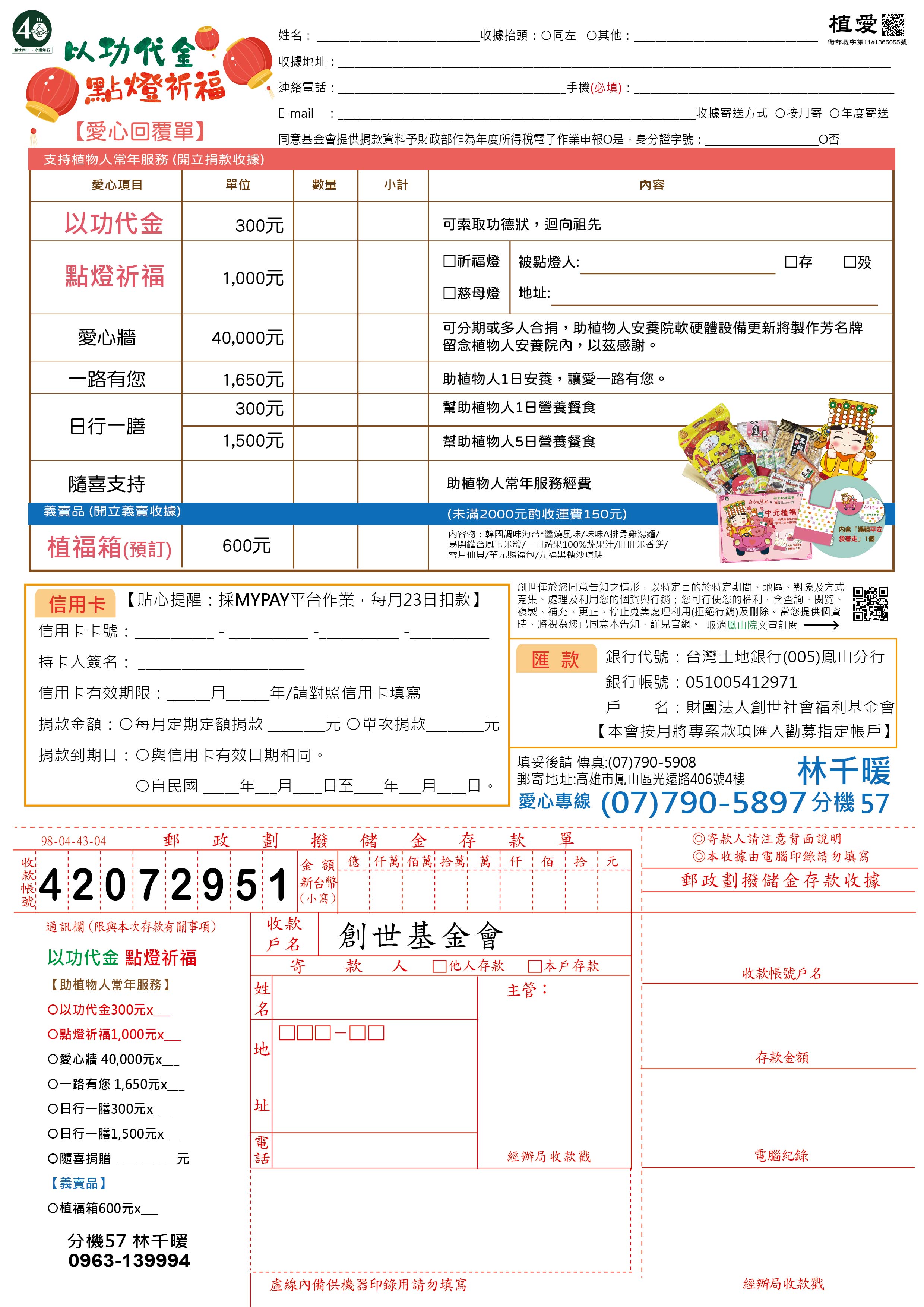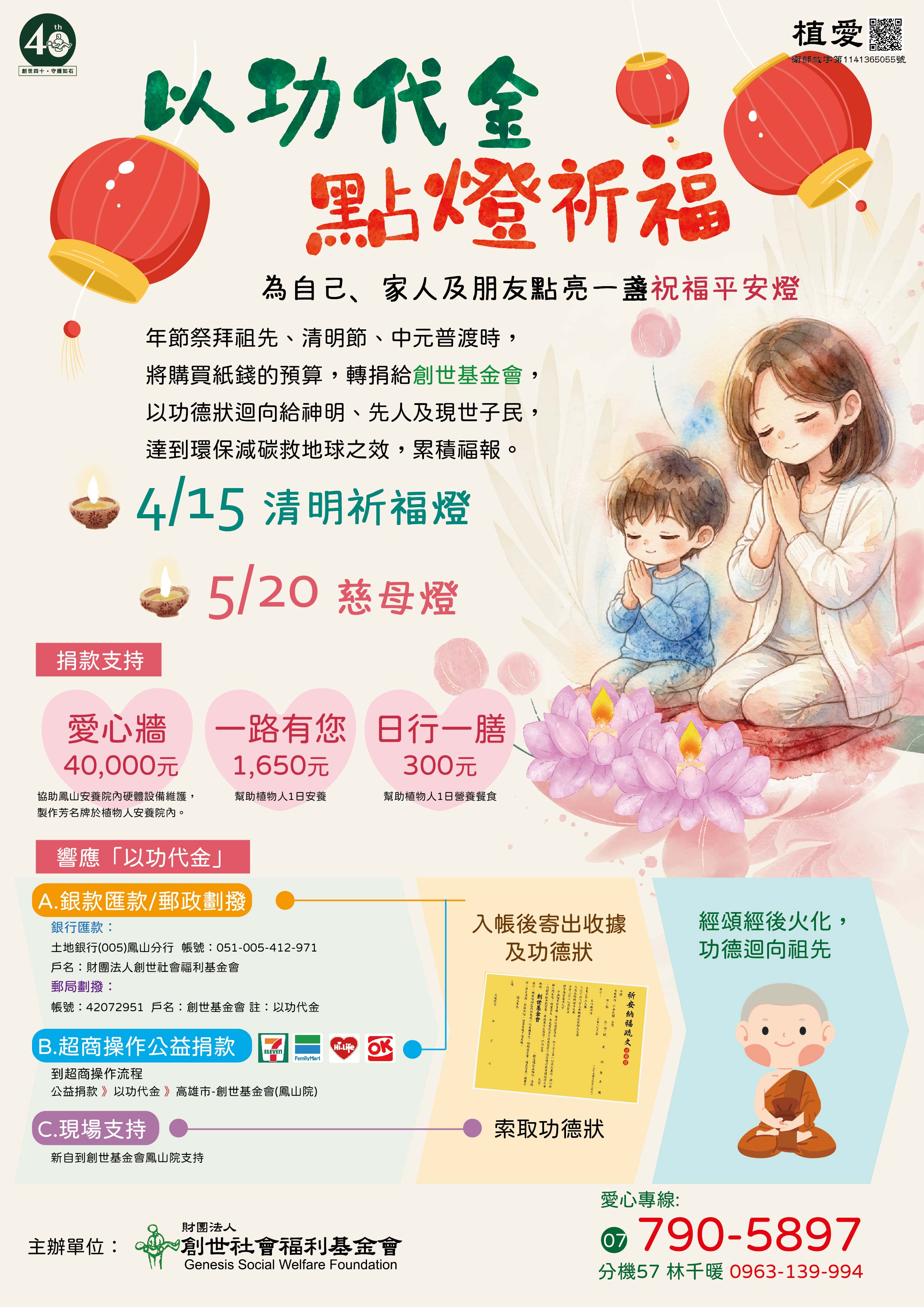 1.以功代金 300元:可索取功德狀,迴向祖先