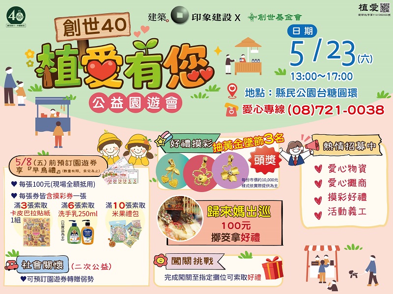 2026年是創世基金會成立40周年,「植愛」象徵創世長年守護植物人家庭,也代表社會大眾將愛心種下、讓希望延續。
