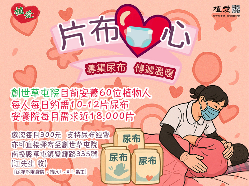 [草屯]:片布愛心-助植物人尿布經費 Sep. 23. 2025