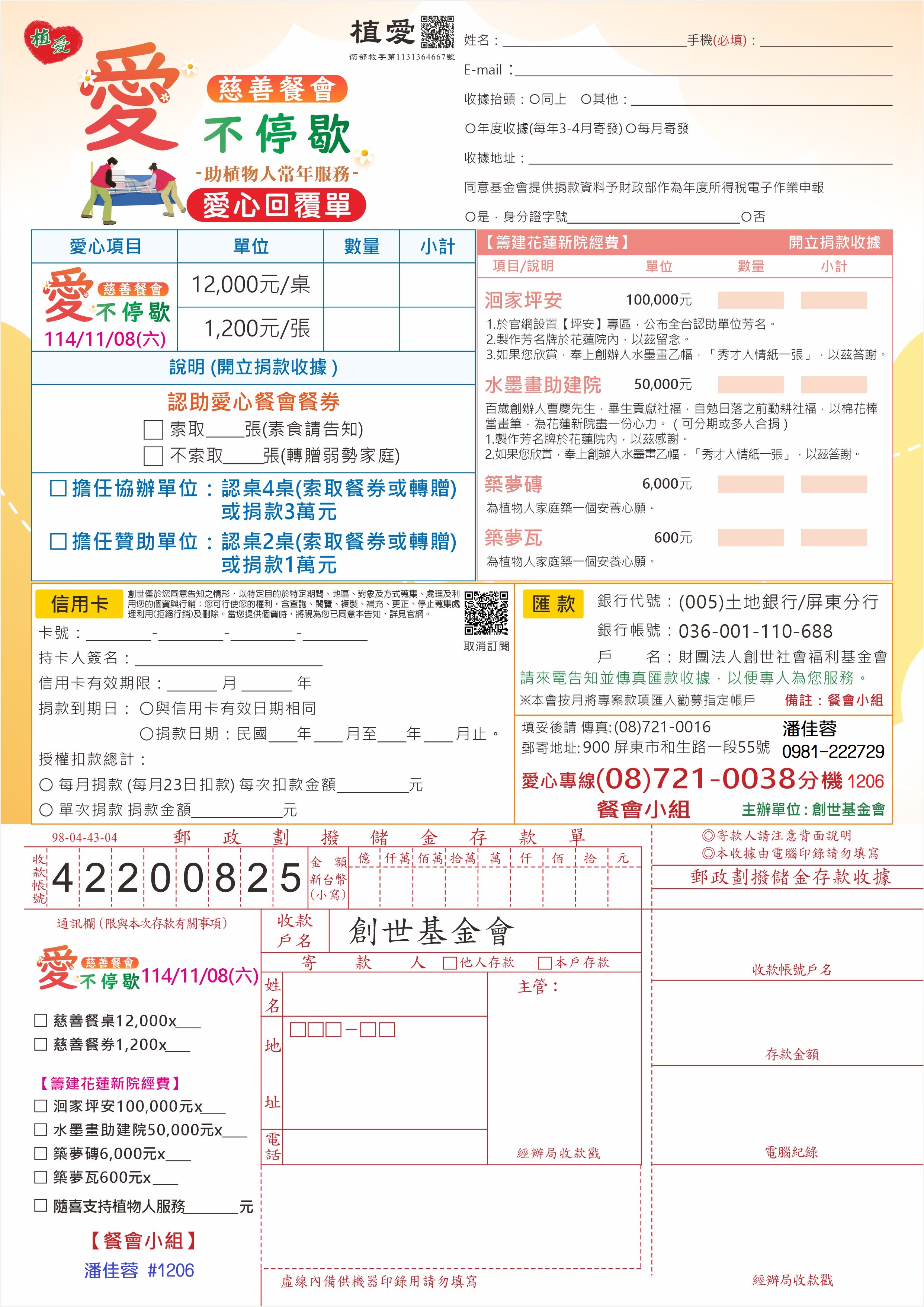 ♫助建花蓮新院暨植物人常年服務♫(開立捐款收據)