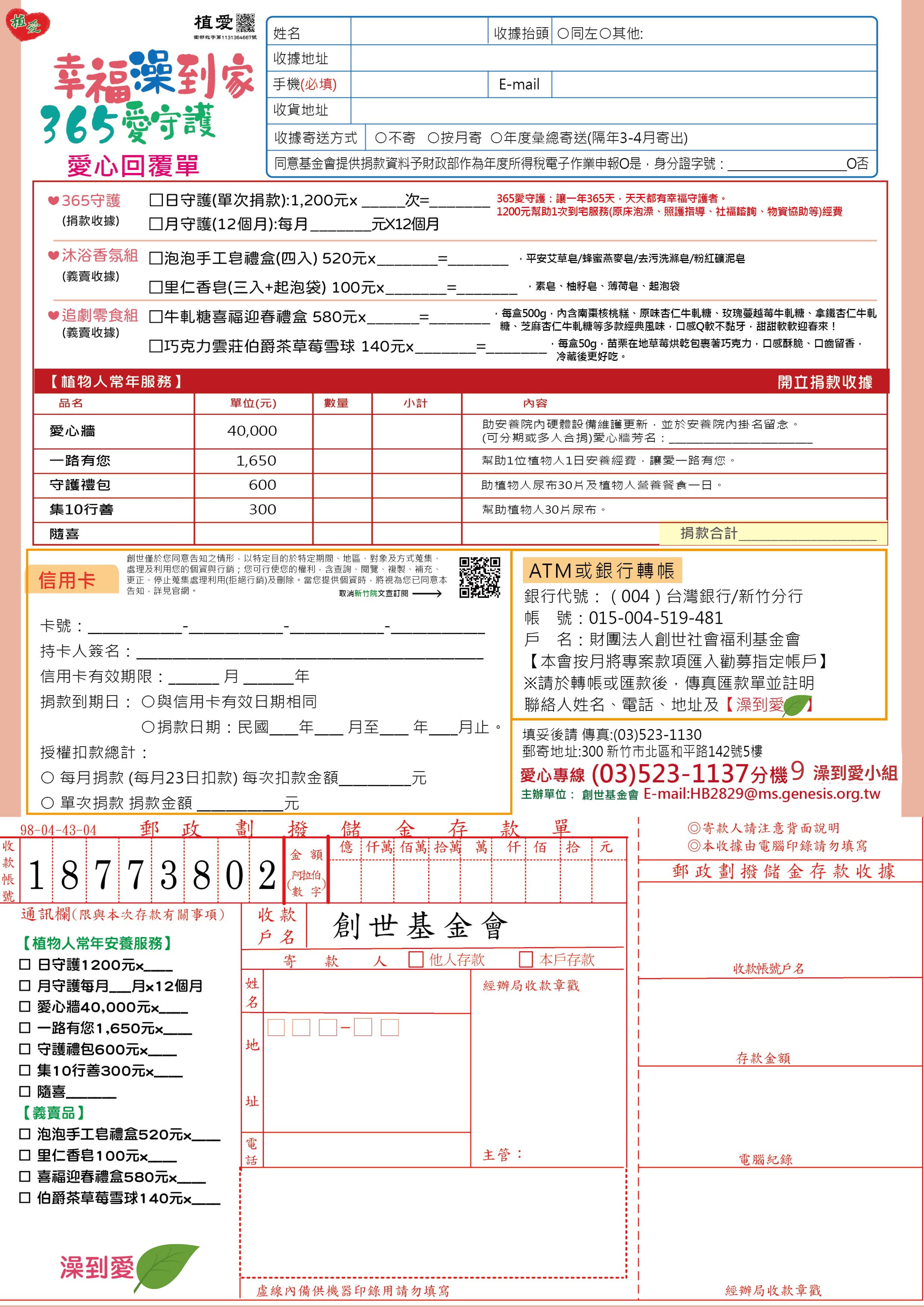 ※轉帳完成後,請來電告知帳號末五碼、收據抬頭、地址,或將存根聯、收據抬頭、電話、地址傳真至(03)523-1130,註明【澡到愛】,以利開立收據。