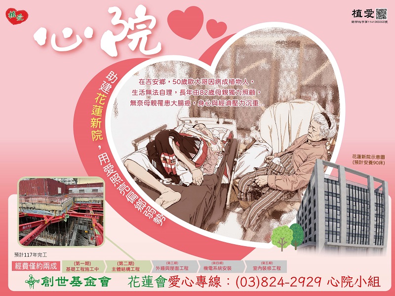 創世正籌建第18家安養院—花蓮分院,仍有許多家庭與歐大哥家一樣,在困境中苦撐,期盼新院早日完成。邀您助建花蓮新院,用愛照亮偏鄉弱勢。
