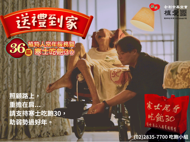歲末寒冬,邀您攜手讓愛奔騰、齊送祝福。農曆年前,一份祝福年禮與紅包,由創世親送至植物人與弱勢家庭手中,讓寒冬有溫暖、過年有依靠,陪伴他們安心迎新年。