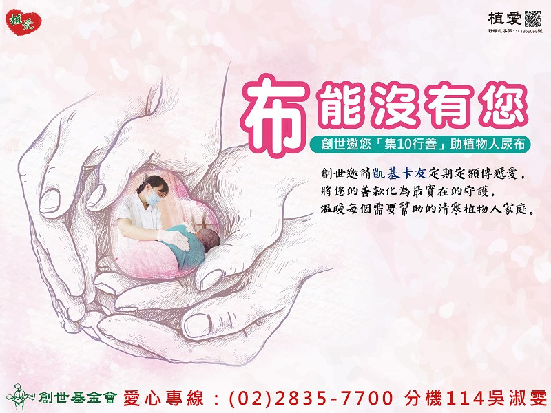 創世邀您「集10行善」助植物人尿布