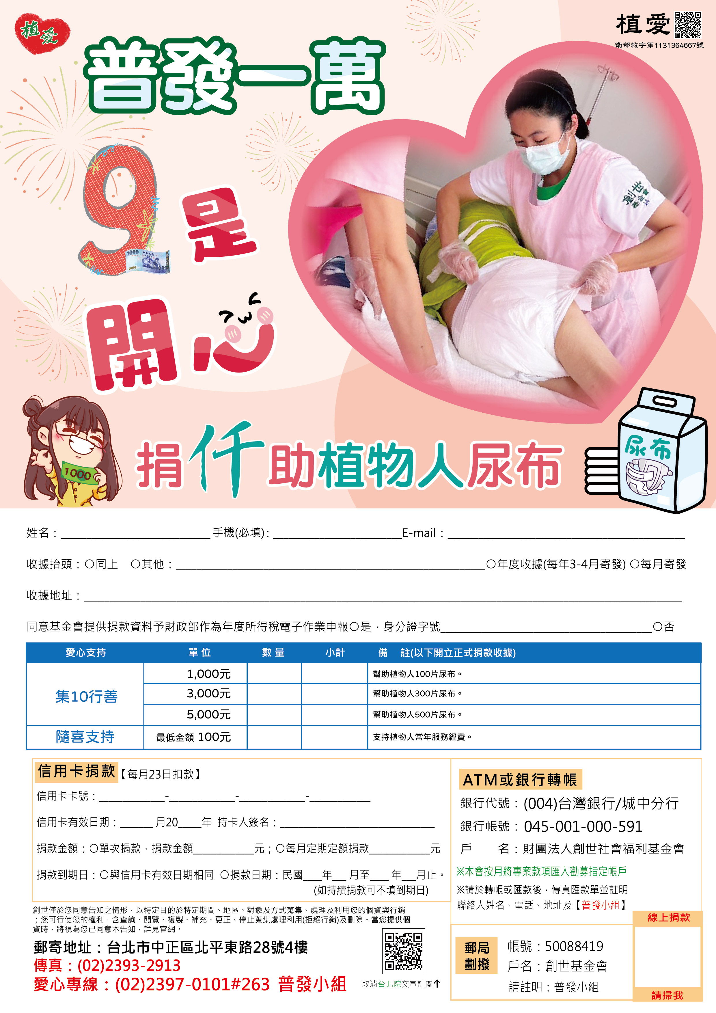 抬頭請開『財團法人創世社會福利基金會』,連同愛心回覆單掛號寄回【吃飽小組】收。