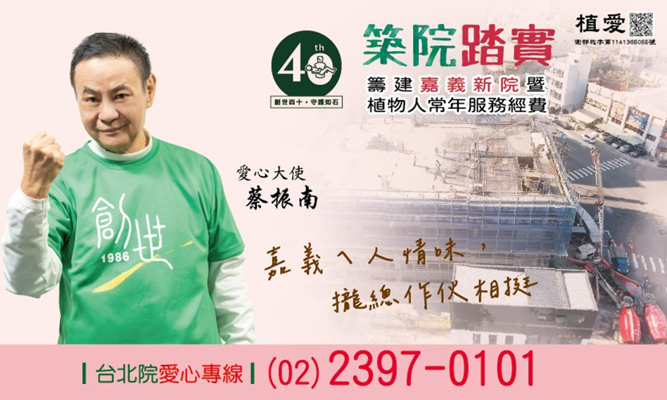 然而,在許多我們看不見的社會角落,仍有無數弱勢家庭正苦苦等待援助。嘉義院目前已滿床,卻仍有許多個案急需入住。為了不讓家庭在無助中崩潰,我們誠摯邀請您一起助建植物人的堡壘──嘉義新院,為等待中的生命撐起一個可以安心託付的家。