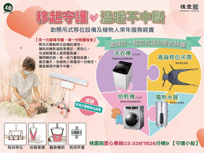 幫助植物人1日安養經費,讓愛一路有您。