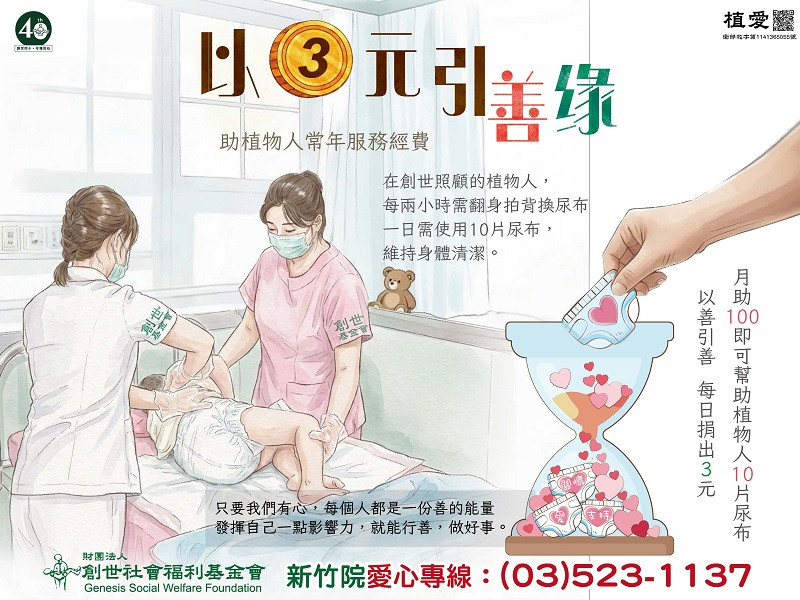 幫助1位植物人1日安養,讓愛一路有您。