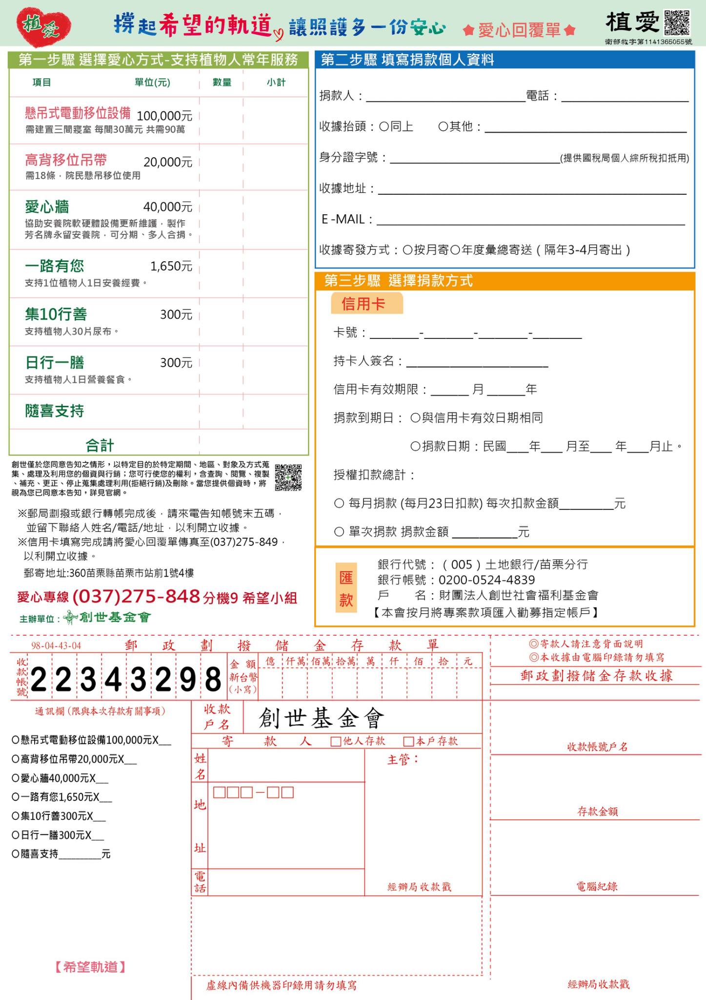 ❤支持植物人常年服務經費❤ (開立捐款收據可抵稅)