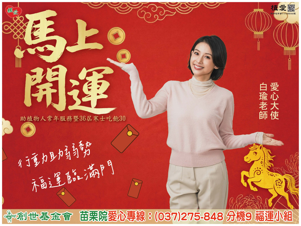 帶來開運秘訣:「行動助弱勢,福運臨滿門」。