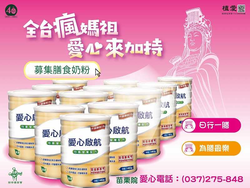 今年,我們發起「全台瘋媽祖 愛心來加持」行動,邀請社會大眾一起為植物人募集膳食奶粉,把媽祖的慈悲化為實際行動,守護每一位院民的每一天。