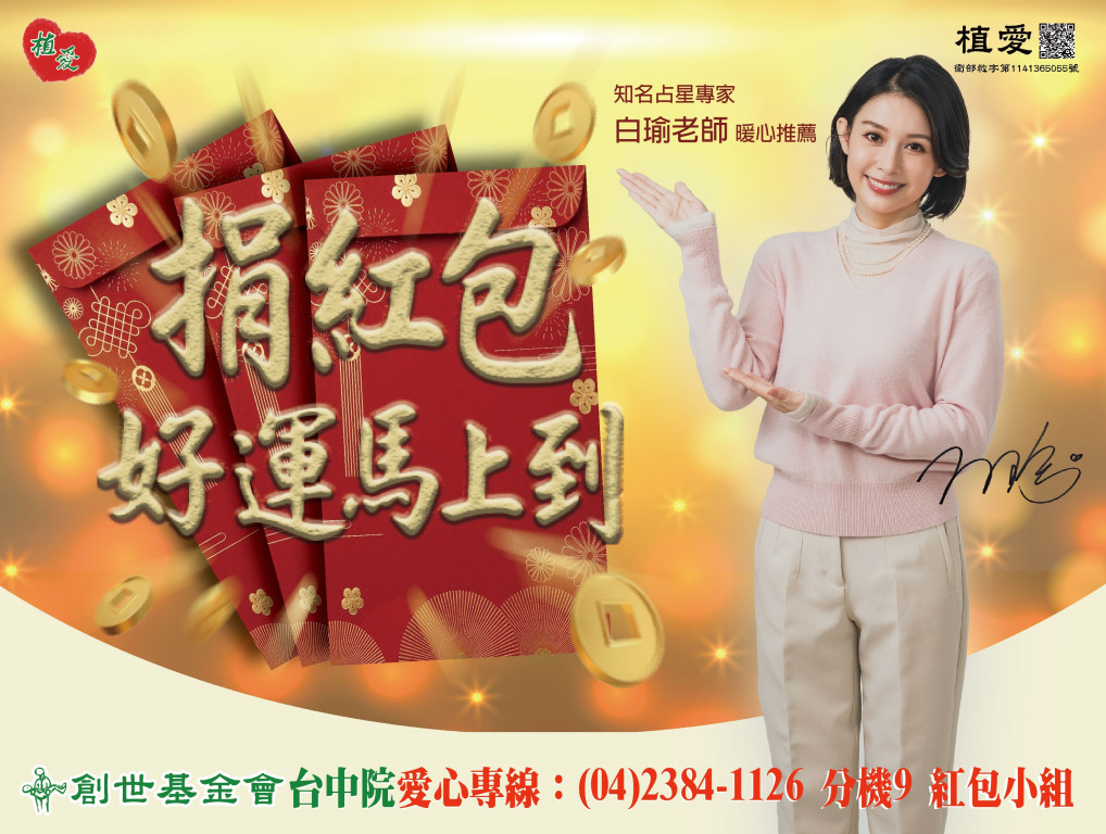 抬頭請開『財團法人創世社會福利基金會』,連同愛心回覆單掛號寄回【紅包小組】收。