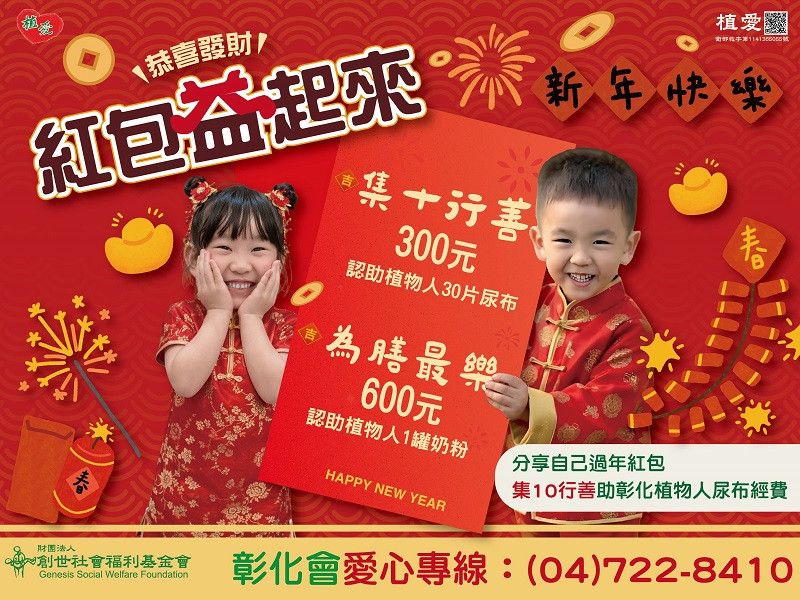 收據抬頭、電話、地址傳真至(04)722-9126,註明【捐紅包】,以利開立收據。