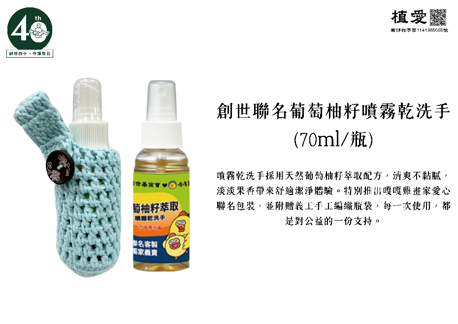 1.創世聯名葡萄柚籽噴霧乾洗手(70ml/瓶)120元/瓶