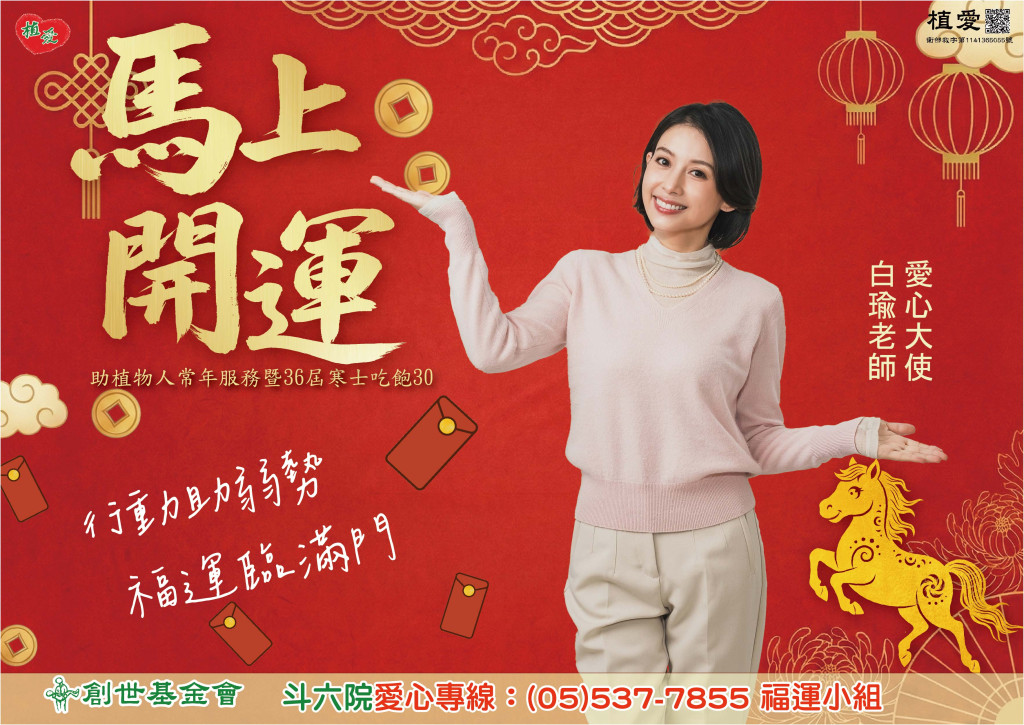 帶來開運秘訣:「行動助弱勢,福運臨滿門」。