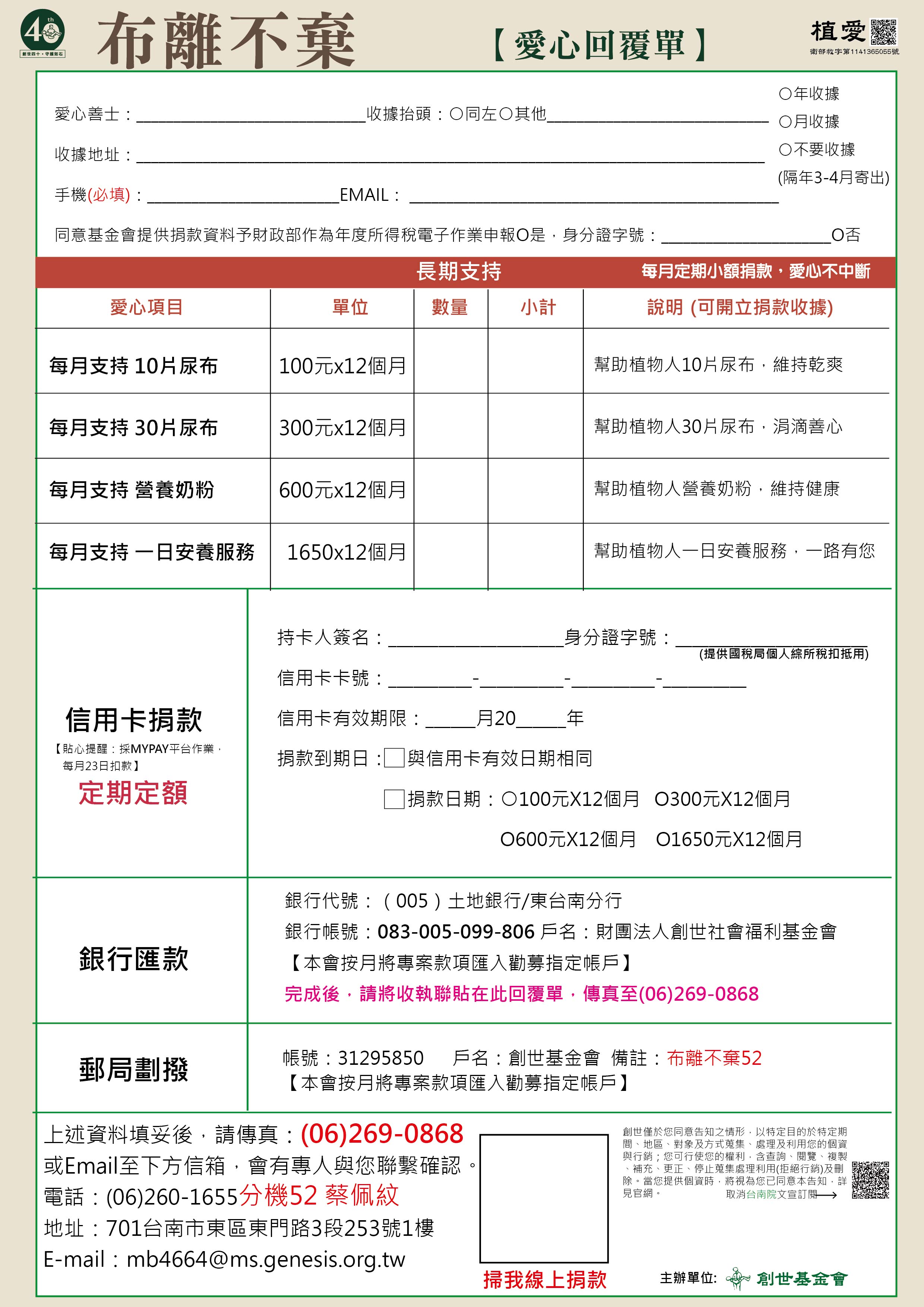 ❤支持植物人常年服務❤ (開立捐款收據可抵稅)