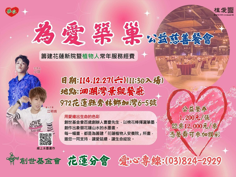 幫助花蓮籌建植物人安養院(憑入場劵,每張皆可參加摸彩活動!)