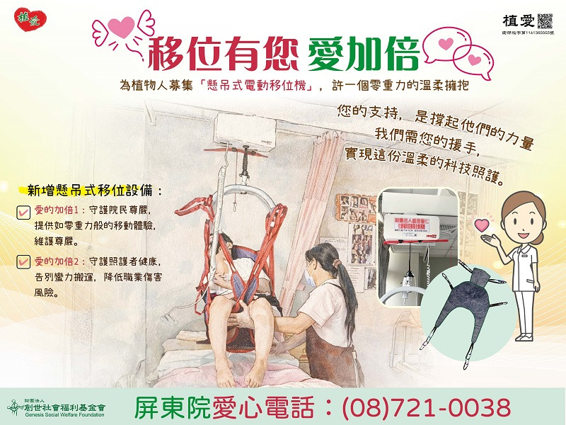為植物人募集「懸吊式電動移位機」,許一個零重力的溫柔擁抱