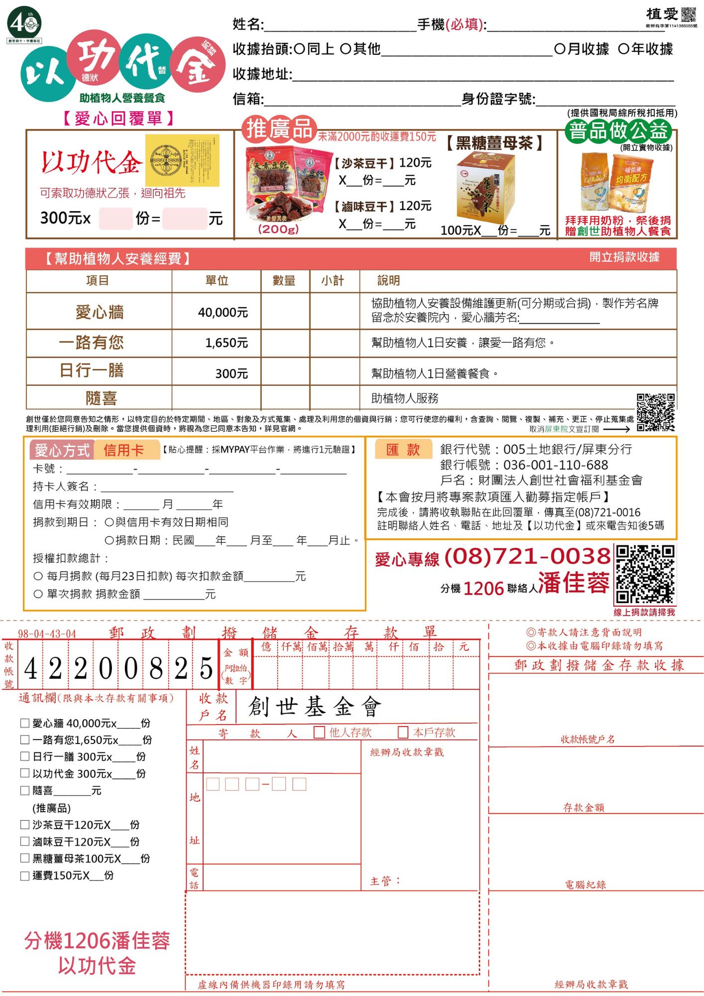1.以功代金 $300:可索取功德狀,祭拜時誦唸迴向祖先或現世子民