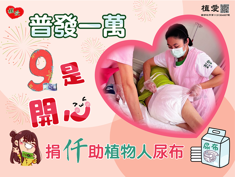 [全台]:【普發一萬 9是開心】捐仟助植物人尿布